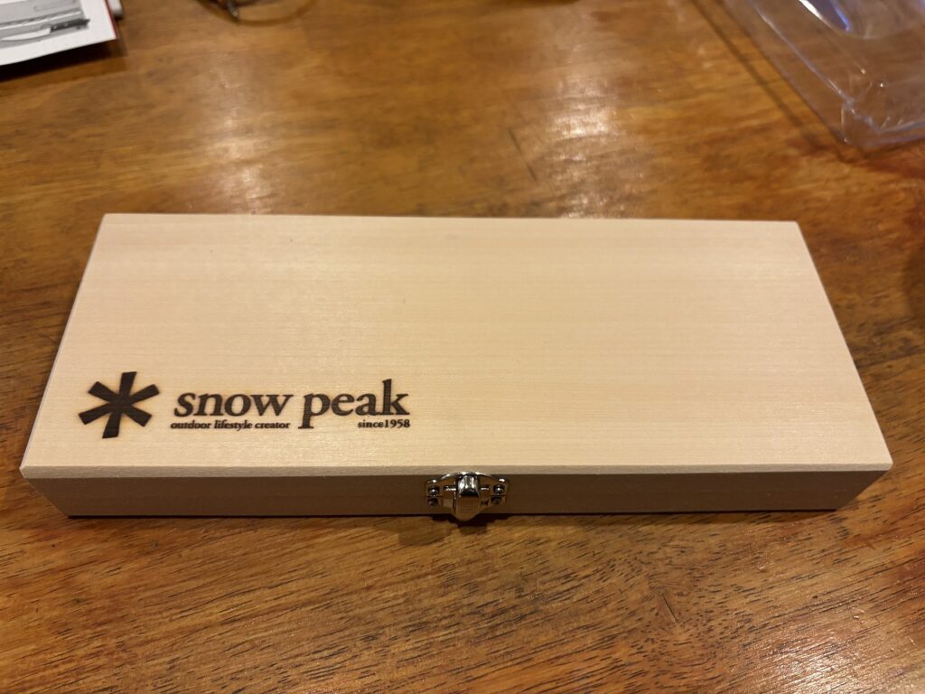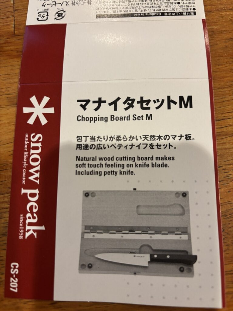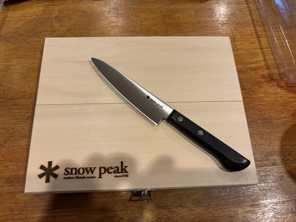 発売当初、すごく惹かれた商品だったのですが、既にナイフは持っていたし、まな板も妻から誕生日プレゼントでキャンプ用の簡易まな板をもらっていたので、購入を控えていましたが、いよいよSnow Peak製の商品を買い尽くしてしまったので、今回はこの商品を思い切ってポチってしまいました。