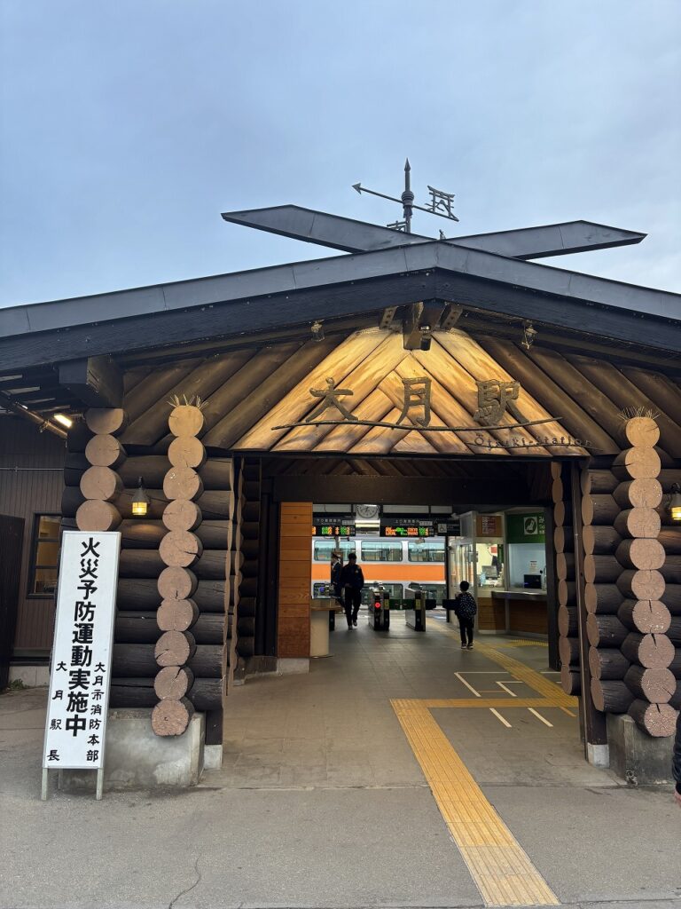 大月駅は新宿駅から電車で1時間30分位で到着します。大月駅までの直行便もあるようですが、本数があまりないので、高尾駅で乗り換えて大月駅へむかいます。