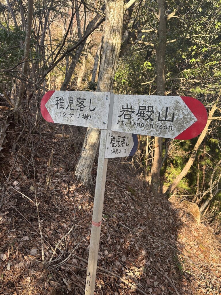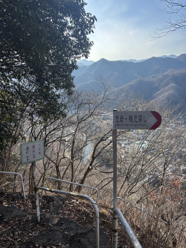 このまま畑倉登山口へ下山してもいいのですが、それだとはやすぎるので、多くの方がすすめている稚児落とし方面へ向かいます。
