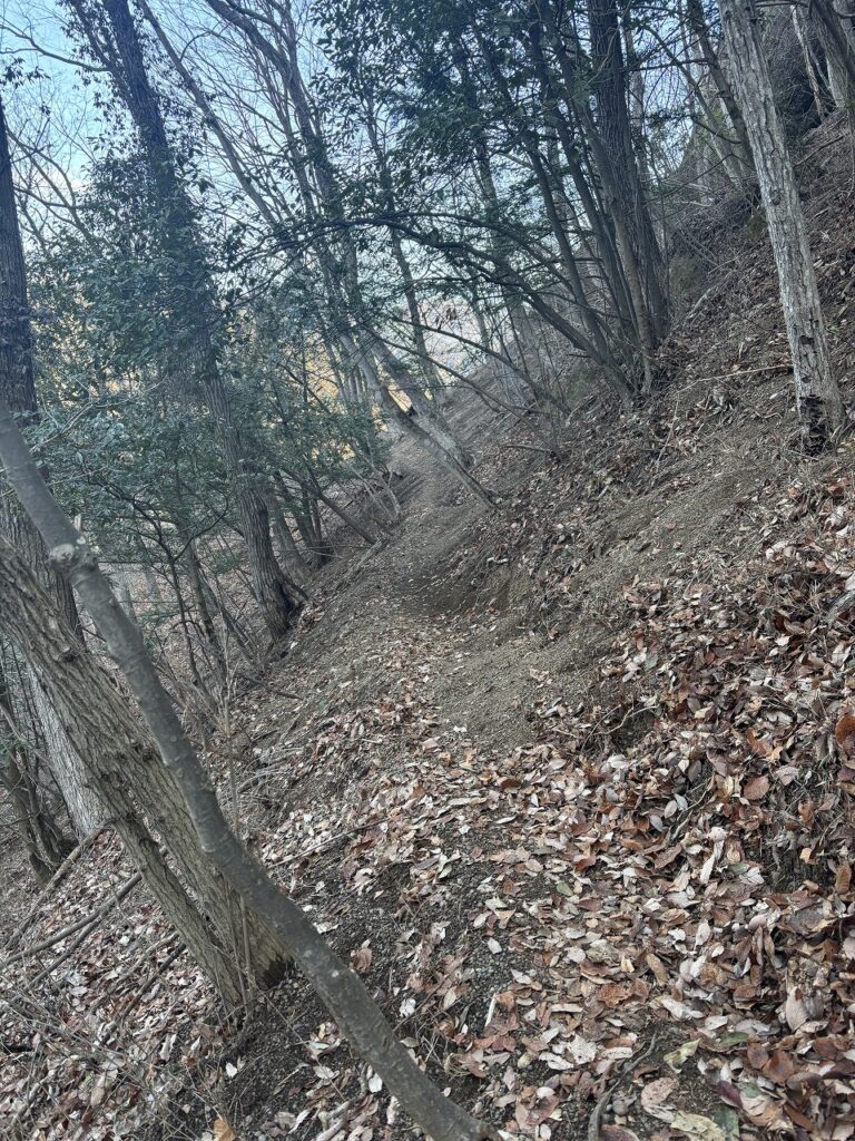 天神山は、山道があるにはあるのですが、細く「ここであってるのか?」と思わされる山道をすすむことになります。