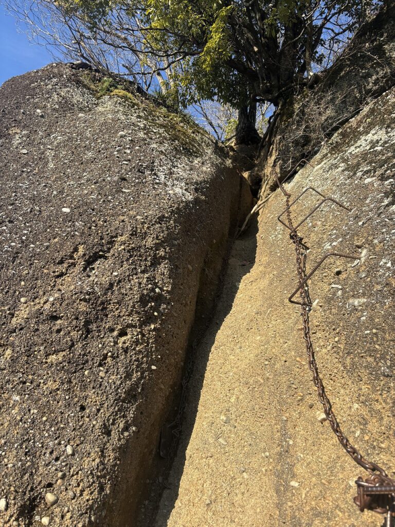山頂から稚児落としへ向かうには、登ってきたルートを少し戻ることになります。