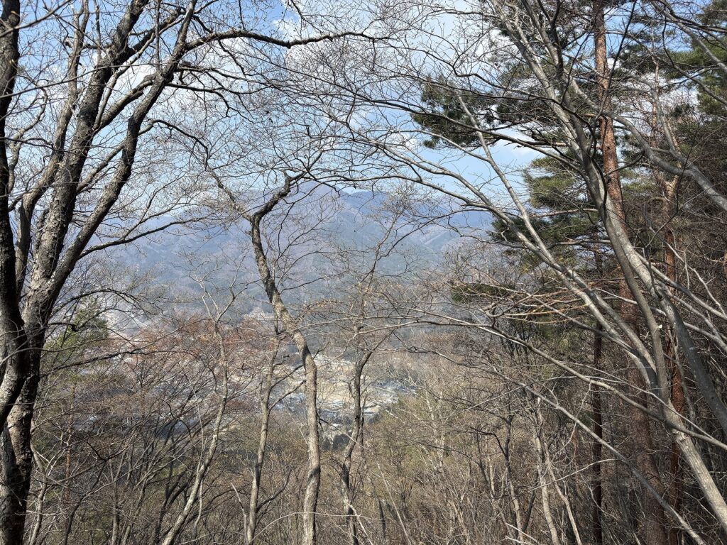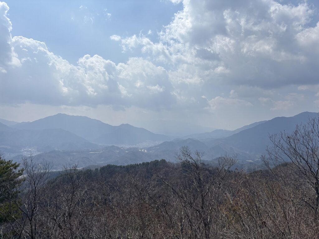 高川山は、写真のような林道をひたすら進むことになりますが、途中でいくつか景色を見られるポイントもあります。ただ、富士山は見ることは出来ませんのであしからず。