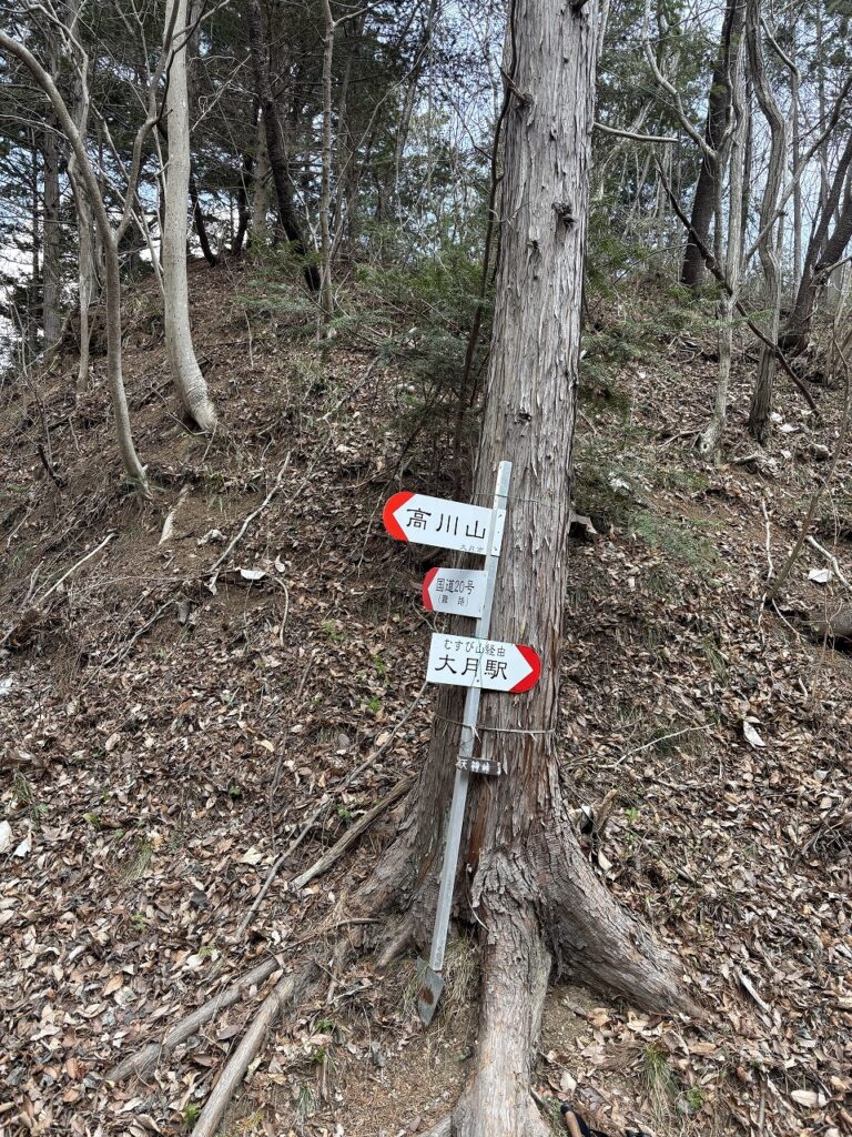 高川山山頂からピストンで初狩駅へ戻るのもいいのですが、それでも4時間弱かかりますし、何より初狩駅は電車の本数が少ないので、それなら頑張って大月駅まで縦走した方がいいですね。