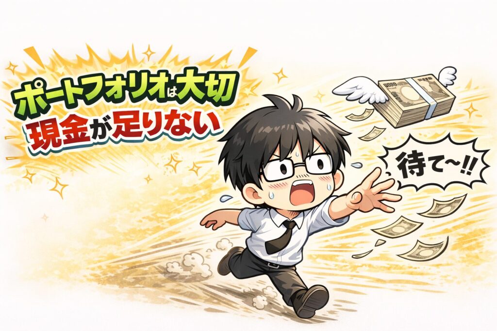 他の指標もそうですが、ポートフォリオで定めた比率に則って、比率に相違が発生したら戻すことが望ましいのですが、現預金が不足となると、どこから調整したらよいかと。