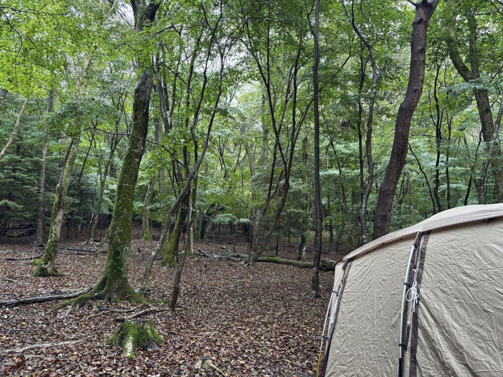 ちなみに、テント設営しようと準備していたところ、動物の鳴き声が聞こえたので周囲を見渡したら、鹿が数頭設営場所の上方で発見!